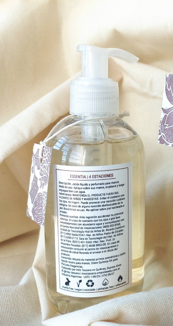 Contenido: Mezcla de materias primas aromáticas y jabón líquido neutro para manos. Dione Química SA para Prefumo Fragancias.